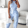 Ärmlös crop top och högmidjade byxor för kvinnor