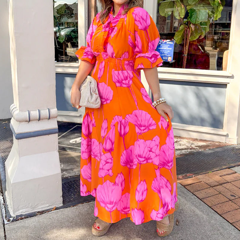 Paketet innehåller: 1* Elegant maxiklänning med rufsigt tryck för kvinnor
