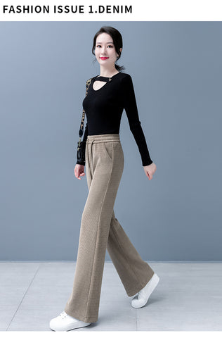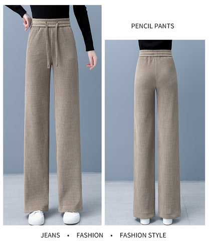 JulförsĂ€ljning - 50% rabatt đ„łKvinnors vadderade och förtjockade fasta fĂ€rgbrett byxor raka byxor