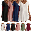 Stor Modell Bomull Blandad Komposit V -Neck Löst Vävd Klänning Korta Ärmar