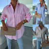 1 x LÄngÀrmad, avslappnad, randig, lös, mittlÄng skjorta för kvinnor