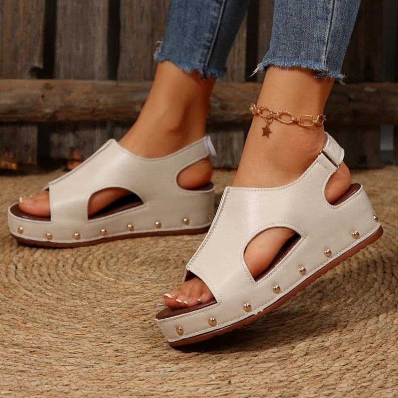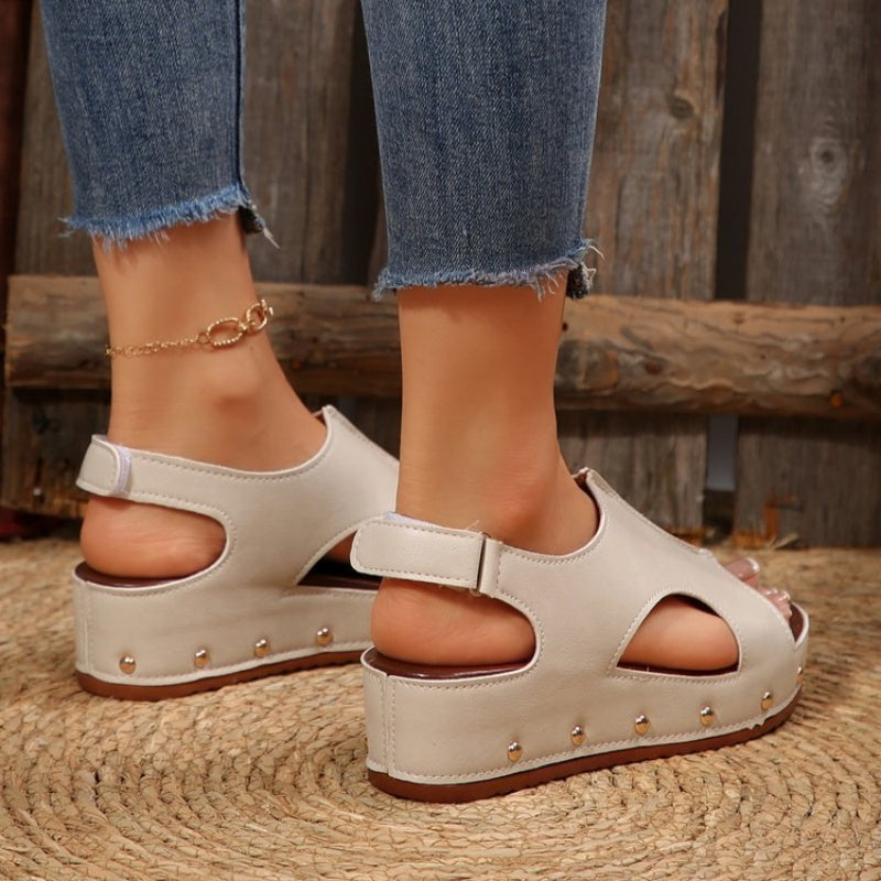 Justerbar elastisk rem med dubbad tjock sula för kvinnor sandaler