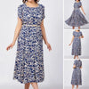 Paketet ingår: 1 * Trendigt blått tryck för kvinnor med kort ärm, flytande klänning med bälte