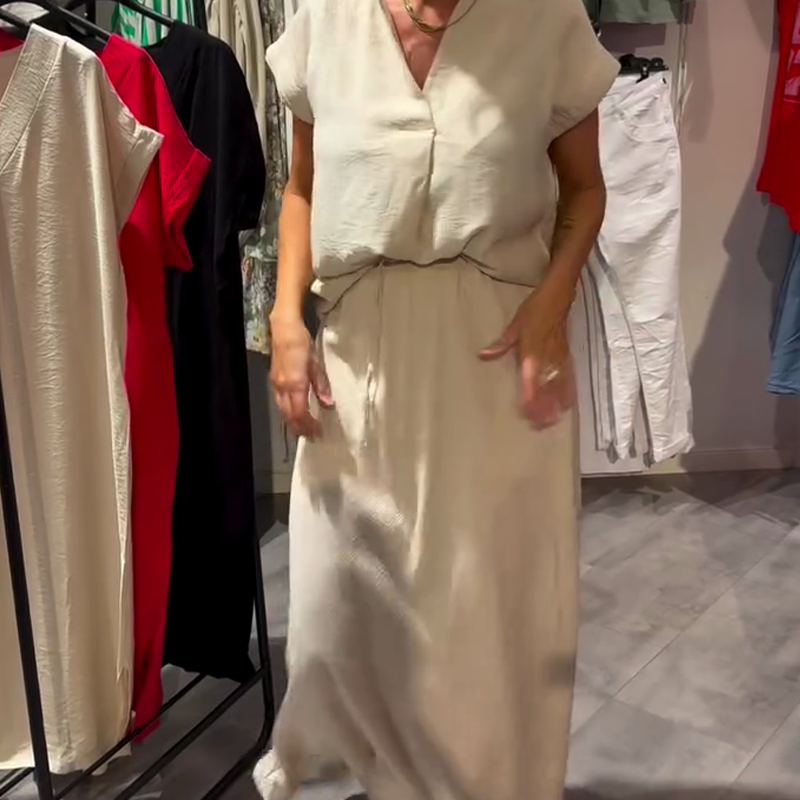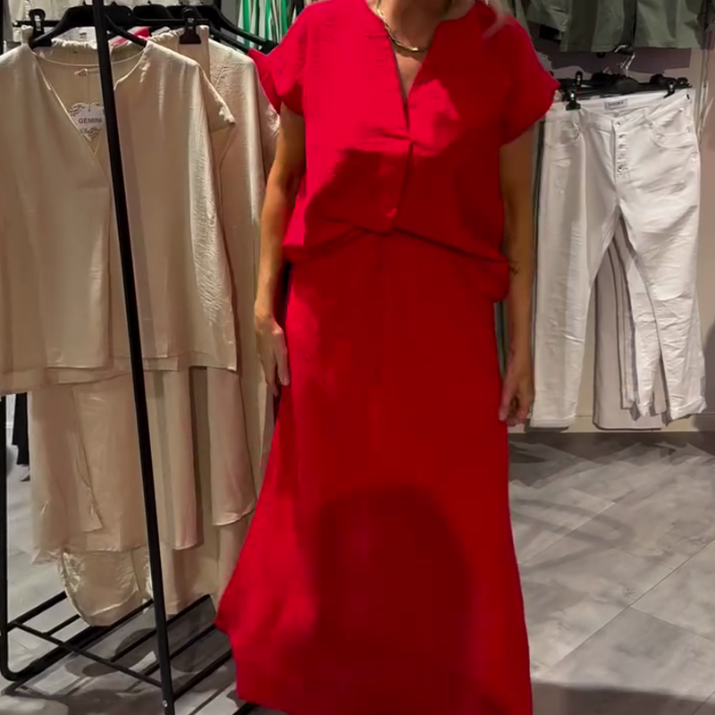 STYLISK OCH EFFEKTIV KOORDINERING - Säg adjö till problem med att para ihop kläder. Detta sommarset för kvinnor är speciellt utformat med en koordinerad stil. Den V-ringade toppen och kjolen kompletterar varandra perfekt, så att du enkelt kan skapa ett modernt utseende utan att behöva matcha enskilda delar.